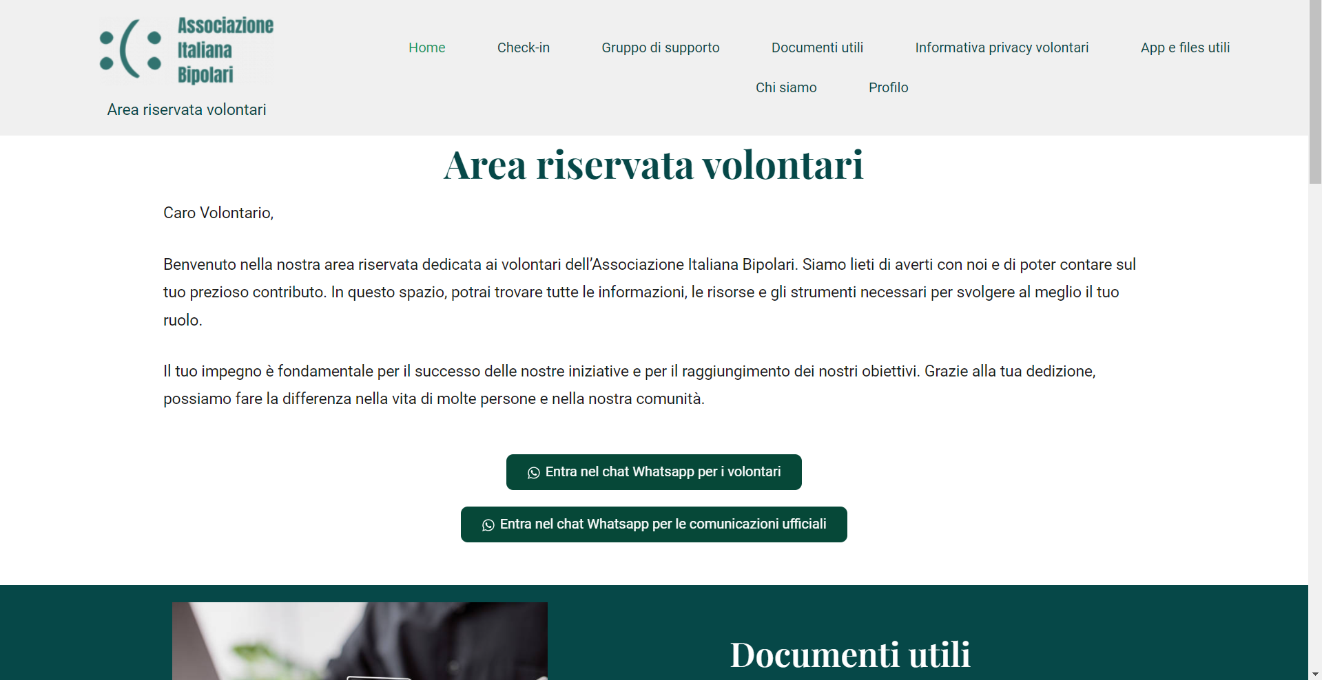 Seguendo la nostra promessa di continuo supporto ai volontari, abbiamo implementato uno spazio privato per i nostri volontari, dove possono accedere loro stessi a un calendario di check-ins e gruppi di supporto per volontari.